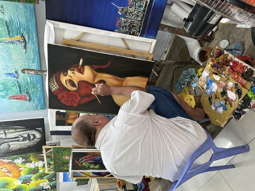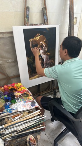 Nous réalisons des reproductions de tableaux peintes à l'huile sur toile, à la main, sur des toiles en coton de très bonne facture. Nos artistes sont tous expérimentés et épaulés par Paul qui vérifie chaque toile dans le détail, quand il ne les peints pas lui-même.