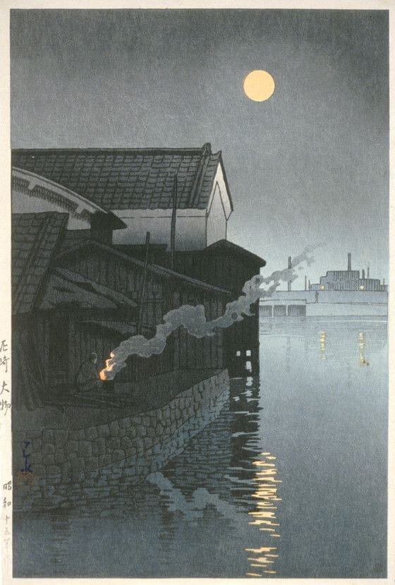 Peinture sur toile, reproduction de Kawase Hasui Daimotsu Amagasaki 1940 qualité musée