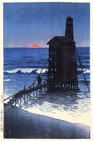 Peinture sur toile, reproduction de Kawase Hasui Sunset At Gomoto Echigo 1921 qualité musée