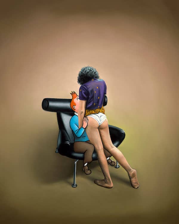 Peinture sur toile, reproduction de Ole Ahlberg Tintin - First Flirting, tableau peint à la main