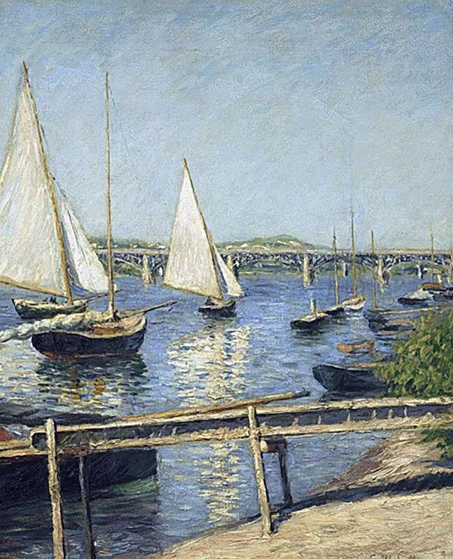 Peinture sur toile, reproduction de Gustave Caillebotte Sailing Boats At Argenteuil qualité musée