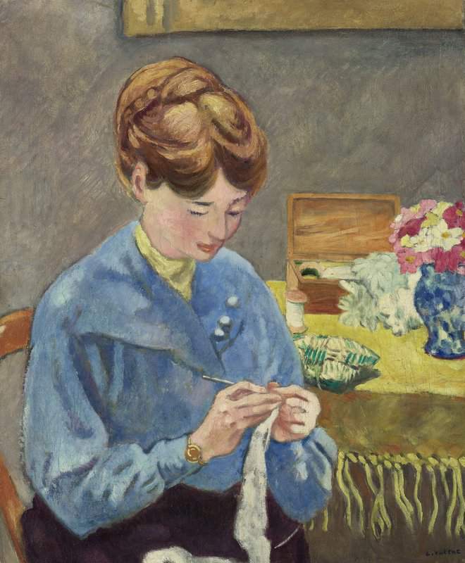 Peinture sur toile, reproduction de Valtat Louis Femme Crochetant 1922 qualité musée